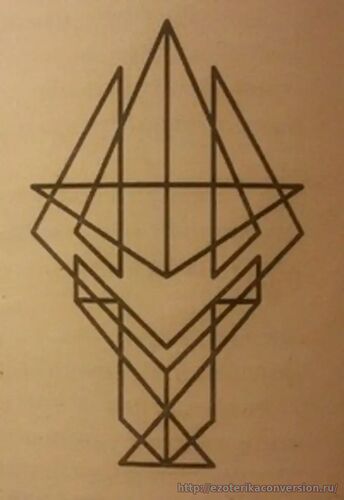 Кстати, обратите внимание, что само начертание данного знака напоминает храм. И это не случайно, ибо "Чаша исцеления" способна создавать область прямого контакта с Высшими Силами, то есть реально воссоздавать пространство храма - места, где Божественные энергии нисходят в материальный мир.